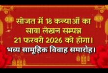 सोजत में 18 कन्याओं का सावा लेखन सम्पन्न, 21 फरवरी 2026 को होगा भव्य सामूहिक विवाह समारोह।