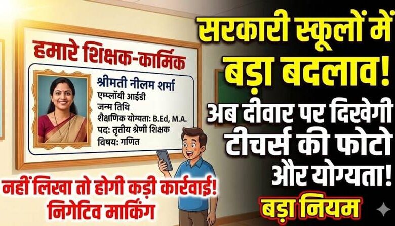 सरकारी स्कूलों में शिक्षकों की फोटो और जानकारी प्रदर्शित करने की यह पहल शिक्षा व्यवस्था को अधिक पारदर्शी बनाने की दिशा में एक सकारात्मक प्रयास मानी जा रही है। इससे छात्रों, अभिभावकों और समुदाय के बीच विश्वास बढ़ेगा और शिक्षा की गुणवत्ता सुधारने में भी मदद मिल सकती है।