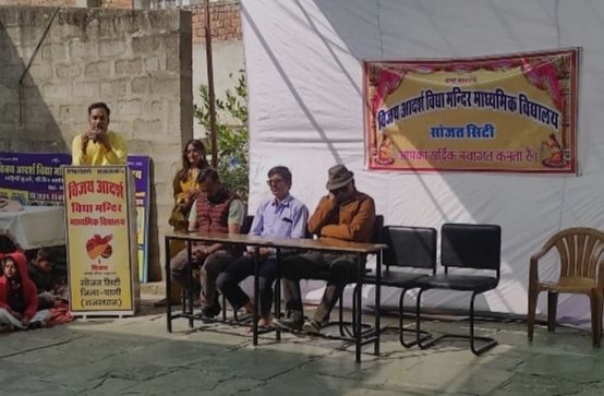 सोजत:विजय आदर्श विद्या मंदिर माध्यमिक विद्यालय में बसंत पंचमी का पर्व धूमधाम से मनाया,मां सरस्वती की पूजा करने से ज्ञान का आशीर्वाद प्राप्त होता है- राही