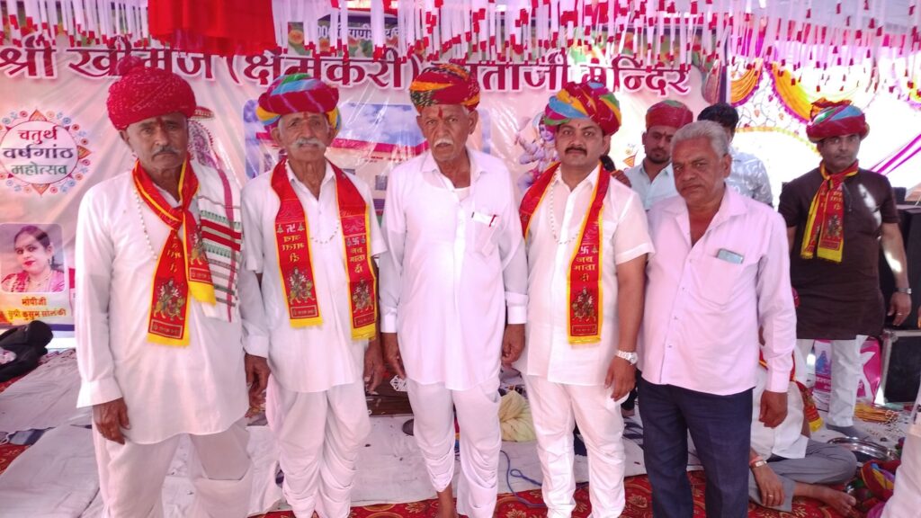 सोजत: खीमज माता मंदिर की चतुर्थ वर्षगांठ महोत्सव हर्षोल्लास के साथ हुआ सम्पन्न, भामाशाह व अतिथियों का हुआ भव्य सम्मान।