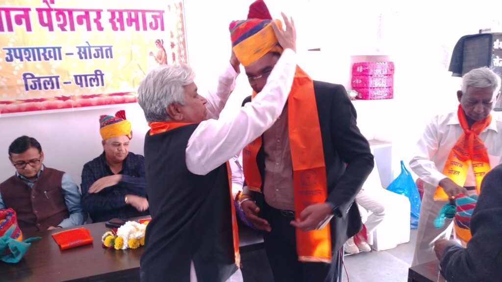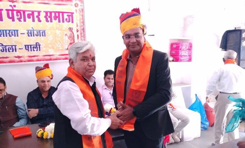 सोजत: पेंशनर्स समाज ने किया नव निर्वाचित बार एसोसिएशन अध्यक्ष देवेंद्र व्यास का सम्मान।