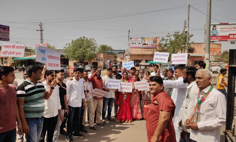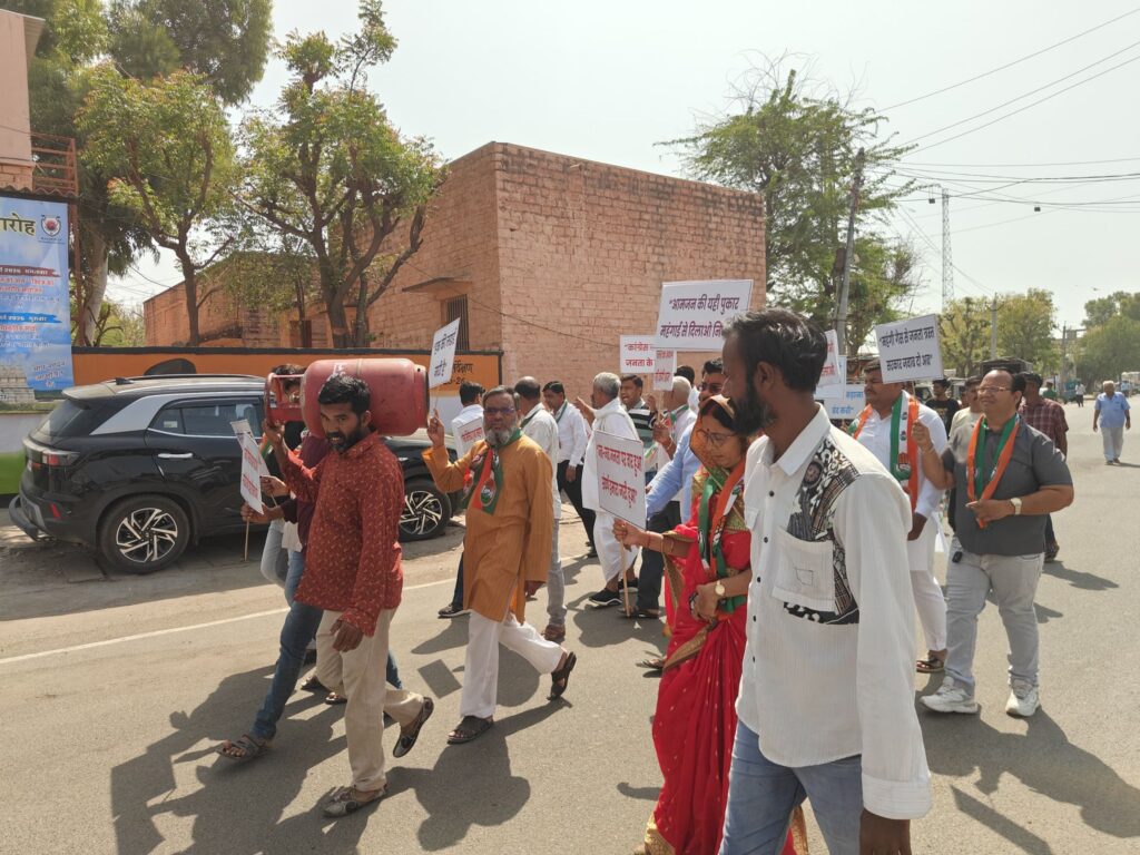 प्रदर्शन के दौरान कार्यकर्ताओं ने आमजन से जुड़े मुद्दों को प्रमुखता से उठाते हुए महंगाई पर नियंत्रण की मांग की। इस अवसर पर नगर कांग्रेस कमेटी अध्यक्ष सत्यनारायण टांक, ब्लॉक संगठन महामंत्री गोविंद दवे, सेवादल ब्लॉक अध्यक्ष असलम मेहर, पूर्व नगर अध्यक्ष महेंद्र पालरिया, पार्षद बालमुकुंद गहलोत, यूथ विधानसभा अध्यक्ष पुनीत दवे, एनएसयूआई युवा नेता राहुल राठौर व साहिल घोसी सहित अनेक नेता मौजूद रहे।