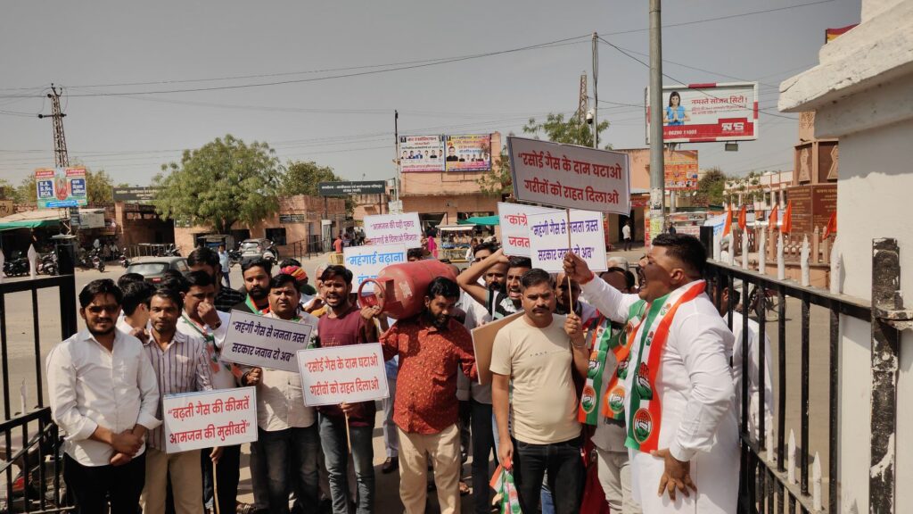 सोजत: महंगाई के खिलाफ कांग्रेस का प्रदर्शन, गैस कीमतों को लेकर केंद्र सरकार पर साधा निशाना।