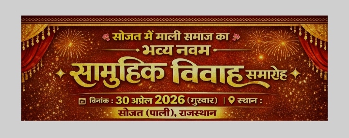 सोजत: माली समाज का नवम सामूहिक विवाह 30 अप्रैल 2026 को, कई महत्वपूर्ण प्रस्ताव हुए पारित।