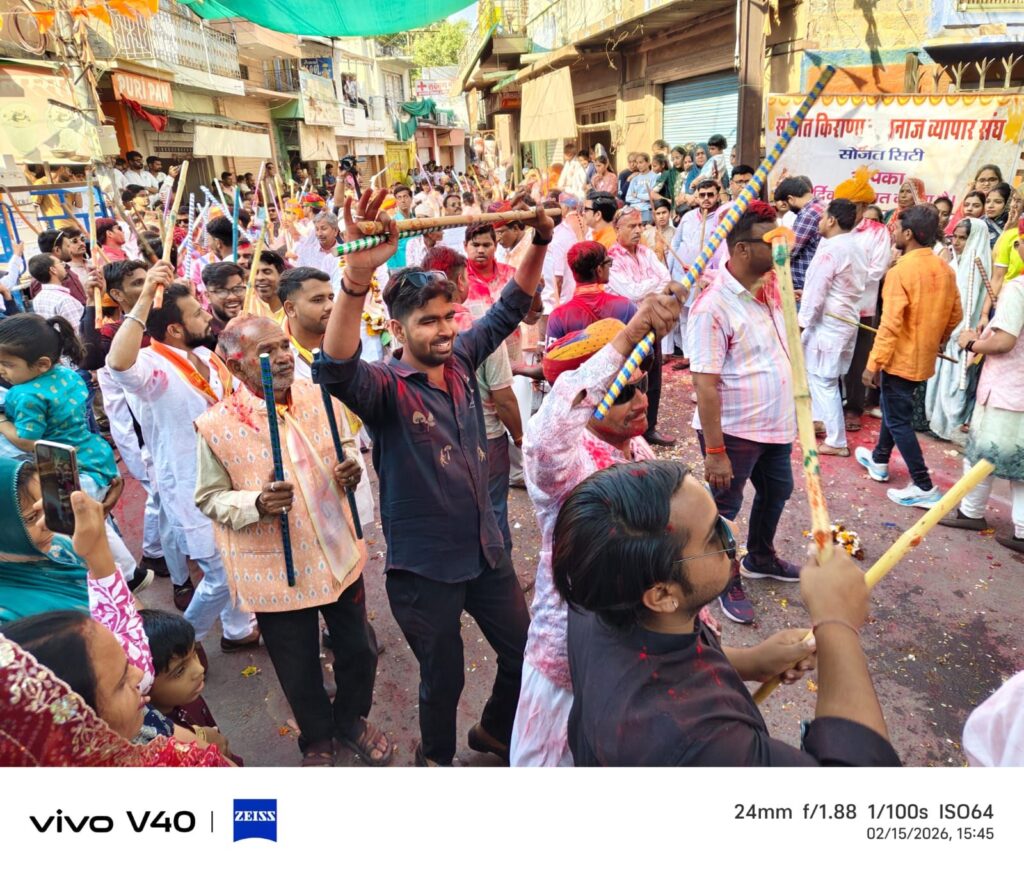 धान मंडी चौराहे पर सोजत व्यापार मंडल द्वारा शोभायात्रा का भव्य स्वागत किया गया तथा समाज के चौधरियों, पंचों एवं गणमान्यजनों का माल्यार्पण कर सम्मान किया गया।