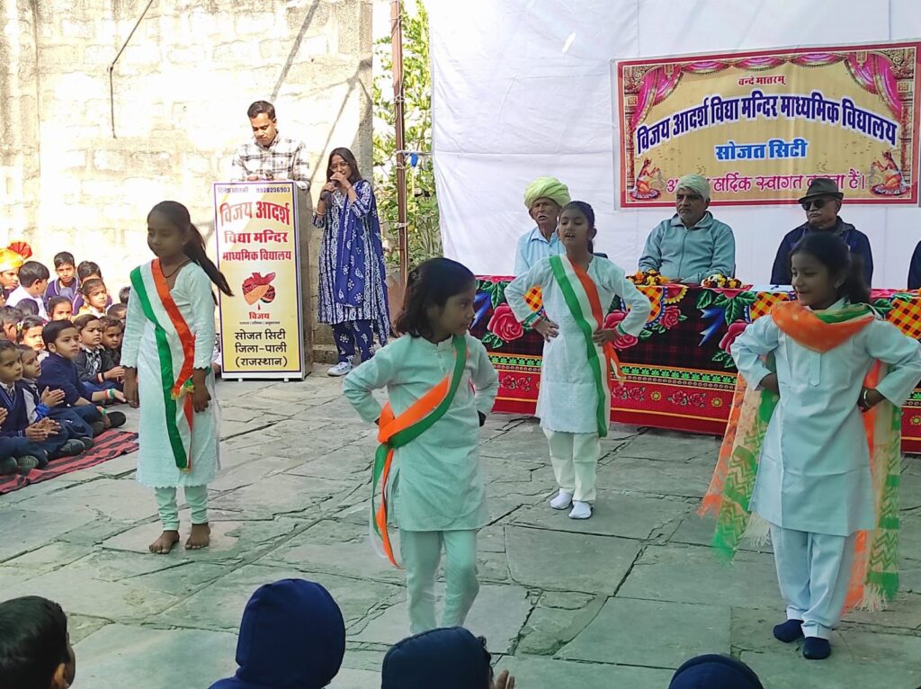सोजत: विजय आदर्श विद्या मंदिर में हर्षोल्लास से मनाया गया 77वां गणतंत्र दिवस, बच्चों की रंग-बिरंगी प्रस्तुतियों ने मोहा मन।