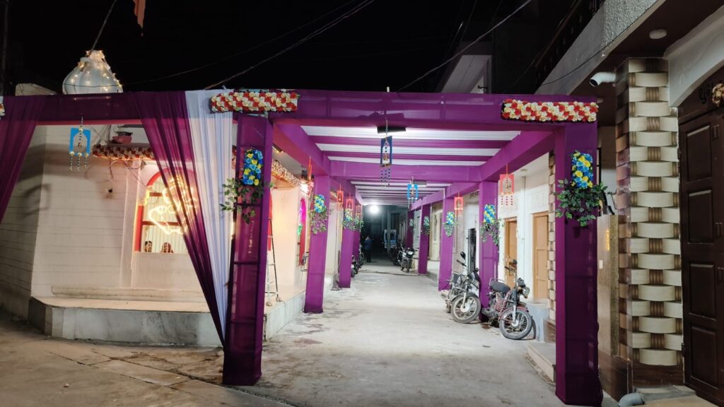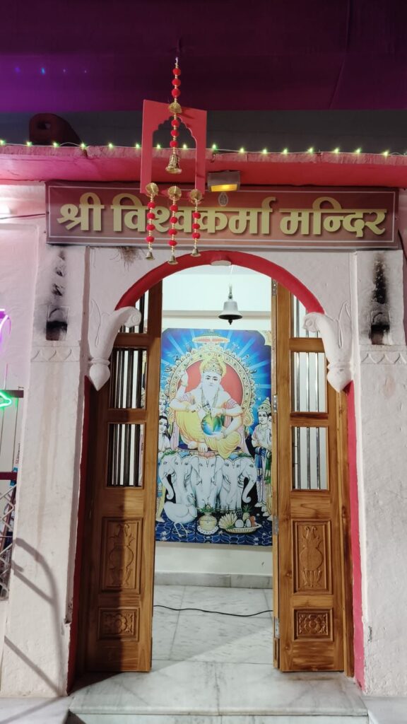 नयापुरा स्थित श्री विश्वकर्मा मंदिर को आकर्षक फूलों, रंग-बिरंगी रोशनी और आकर्षक टेन्ट सजाया गया है।
