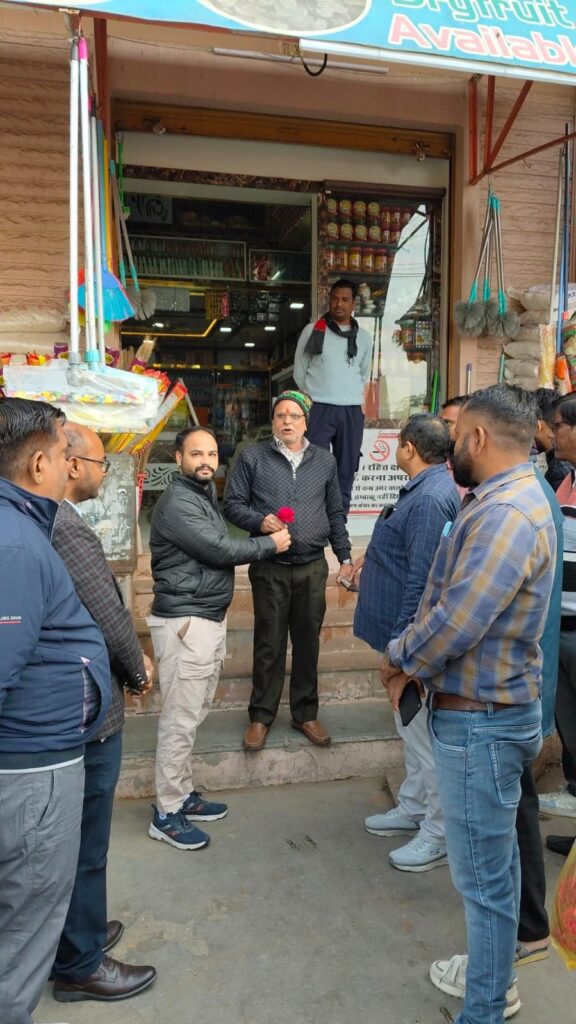 सोजत।अधिशासी अधिकारी की प्रशासन के संग अनोखी पहल सुरंगों सोजत स्वच्छ सोजत के तहत नगर पालिका प्रशासन कार्मिक और स्वच्छता कमेटी द्वारा प्रातः कालीन बस स्टैंड और मुख्य बाजार की स्थाई व अस्थाई दुकानों पर जाकर दुकानोंदारो को सिंगल यूज प्लास्टिक उपयोग न करने, कचरा रोड पर ना फेकने तथा डस्टबिन का उचित उपयोग कर कचरा कचरा वाली गाड़ी में ही डालने के लिए प्रेरित किया तथा आगामी स्वच्छ सर्वेक्षण में अपना अमूल्य सहयोग हेतु समझाइश की साथ हि ढोल नगाड़ों के साथ गुलाब का फूल भेंट कर पहल सुरंगों सोजत में अपनी सहभागिता और सहयोग सुनिश्चित करने के लिए आग्रह किया गया ।