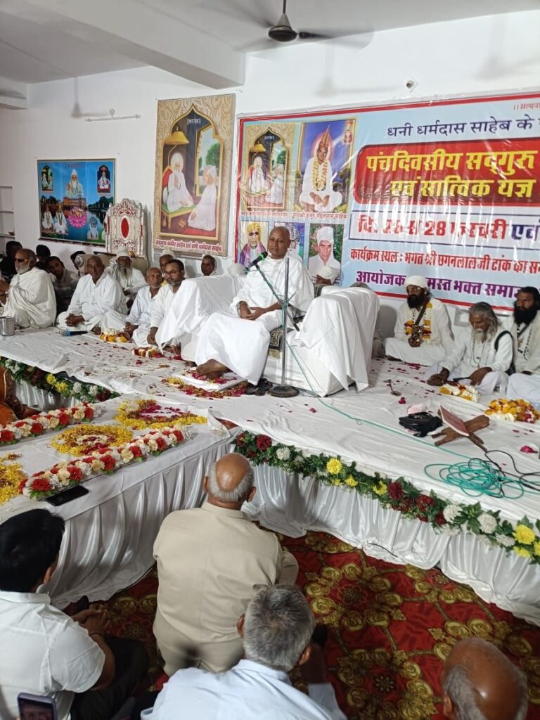 वे शनिवार सायं छगनलाल टाक आश्रम में घनी धर्मदास साहेब की पुण्यतिथि के उपलक्ष्य में आयोजित पांच दिवसीय सदगुरु कबीर सत्संग समारोह एवं सात्विक यज्ञ, चौका आरती कार्यक्रम के तीसरे दिन श्रद्धालुओं को संबोधित कर रहे थे।