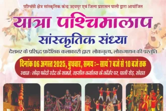 सोजत में आज “यात्रा पश्चिमालाप” सांस्कृतिक संध्या का भव्य आयोजन,सज रहा है भव्य मंच-राष्ट्रीय व अंतरराष्ट्रीय कलाकार देंगे प्रस्तुतियां।