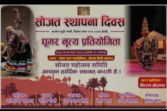 सोजत महोत्सव 2025: आज घूमर समुह नृत्य प्रतियोगिता,आज दोपहर 3 बजे शंकरबाग मे शुरू होगी प्रतियोगिता।