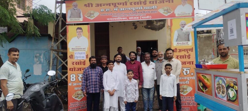 सोजत। जश्ने ईद मिलादुन्नबी के मौके पर हर साल की तरह इस वर्ष भी मुस्लिम समाज की ओर से मानव सेवा की मिसाल कायम की गई। शुक्रवार को उपखंड कार्यालय के पास स्थित अन्नपूर्णा रसोई घर में सुबह से रात्रि तक नि:शुल्क भोजन की व्यवस्था की गई, जिसमें आमजन बड़ी संख्या में पहुंचे और भोजन ग्रहण किया।