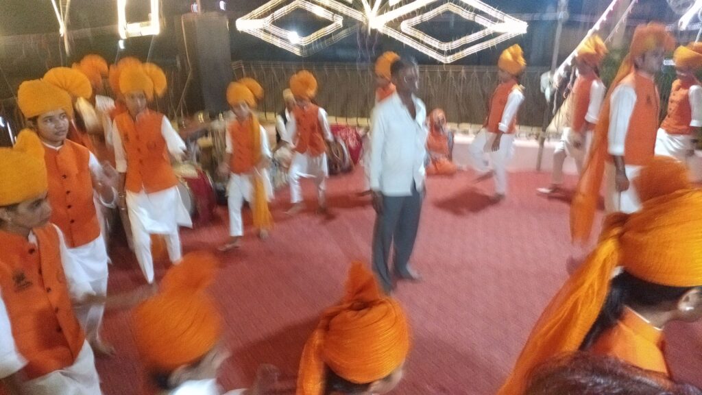 3. रिदम एवं ढोल ताशों पर गरबा – महा आरती के बाद वीरांना वाहिनी एवं सेजल माता मंदिर मंडल की बालिकाओं द्वारा रिदम पर डांडियो’ की खनक के साथ गरबा नृत्य प्रस्तुत किया गया उसके बाद भजनों की सरस सलीला प्रवाहित की गई।