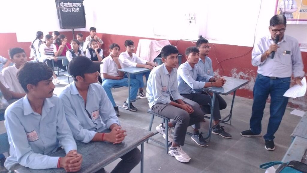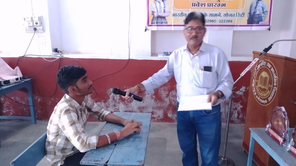 सोजत। “मैं सोजत हूं” सामान्य ज्ञान प्रश्नोत्तरी प्रतियोगिता में सोजत महोत्सव समिति के तत्वावधान में स्थानीय श्री जैन गौतम गुरुकुल में सोमवार को 7 विद्यालयों के 36 छात्रों ने भाग लिया सोजत के सामाजिक , भौगोलिक,आर्थिक एवं धार्मिक परिवेश तथा अन्य प्रश्नो के विभिन्न राउण्डों में अंतिम परिणाम में मोतीचंद सेठिया आदर्श विद्या मंदिर के निखिल मेवाड़ा प्रथम ,डीपीएस स्कूल की दीक्षा मेवाड़ा द्वितीय स्थान पर तथा आलोक विद्या मंदिर का मंजीत सिंह तंवर तृतीय स्थान पर रहा ।