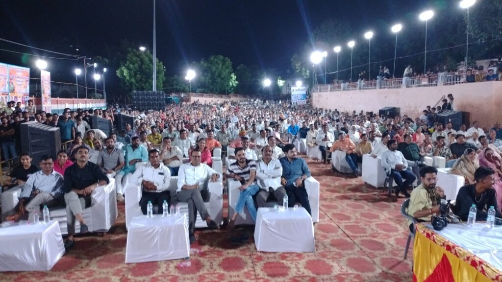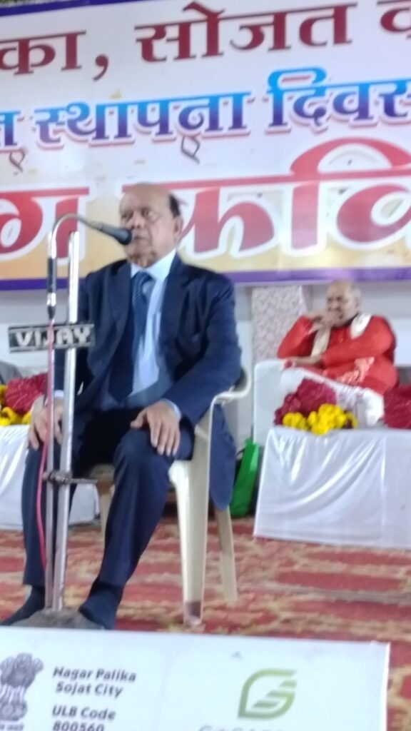 भीलवाड़ा से आए कवि योगेंद्र शर्मा ने ओजस्वी कविता सुनाते हुए कहा – “बाज की ताकत को सपोला आजमाना चाहता है, मदारी फूंक से पर्वत उड़ाना चाहता है।”