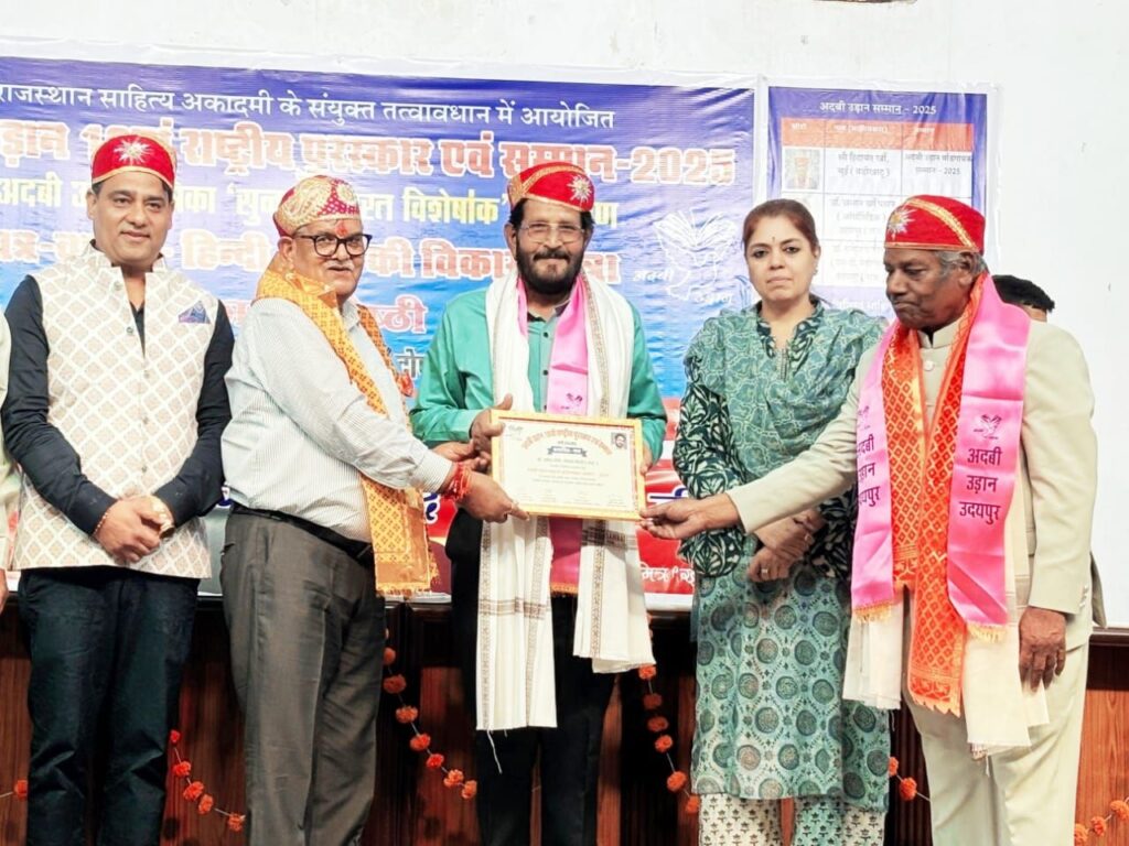 सोजत। साहित्यिक संस्था अदबी उड़ान उदयपुर का दसवां भव्य राष्ट्रीय पुरस्कार एवं सम्मान समारोह-2025 राजस्थान साहित्य अकादमी उदयपुर के सभागार में संपन्न हुआ। समारोह के मुख्य अतिथि पंजाब के राज्यपाल महामहिम गुलाबचंद कटारिया थे।