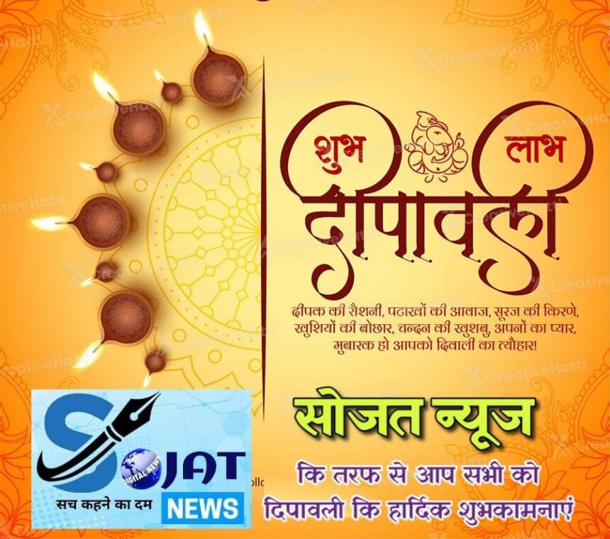 *सोजत न्यूज़ की ओर से सभी देशवासियों को दीपावली की हार्दिक शुभकामनाएँ*!