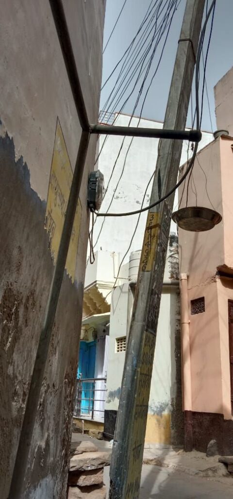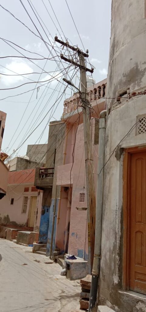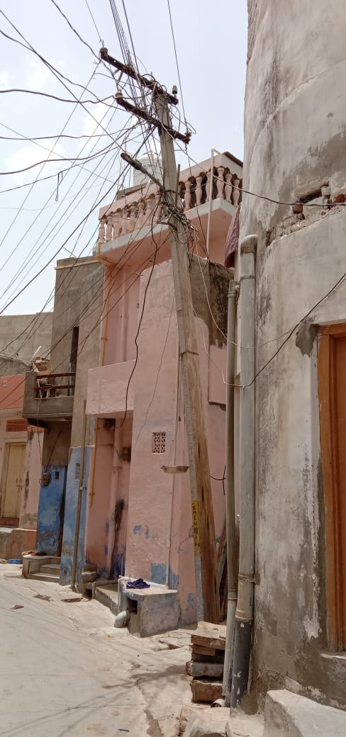 सोजत। स्थानीय सिरवियों के बास में लाईट पोल पिछले लम्बे समय से आधा झुक गया है जिसके तार नीचे लटक कर झूल रहे हैं। आंधी तूफान में बड़ा हादसा होने का लोगों में भय बना रहता है। जो मोहल्ले वासियों के लिए सर दर्द और परेशानी का सबब बने हुए हैं। पोल नीचे से काफी जगह से टूट गया है। मोहल्लेवासी गजेंद्र सिंह माफावत ने बताया कि बिजली विभाग को काफी बार सूचित किया गया पर बिजली पोल नहीं बदला गया। तथा आल लाइन शिकायत 181नम्बर पर कितनी बार सूचित किया पर कोई समाधान नहीं हुआ। उस पोल के झुक जाने से घर के आस पास घरों पर लाइट तार आ रहे हैं आधी तूफान के समय तो तार घरों की छत से टकराते हैं कभी भी बड़ा हादसा हो सकता है लोग अपने घर की छत पर जाने से भी डरते हैं। मोहल्ले वासियों का कहना है कि इस समस्या से हमें शीघ्र निजात दिलाई जाए ताकि कोई बड़ा हादसा नहीं हो।